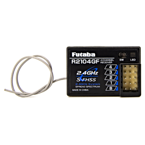 The Futaba High R2104GF High Voltage 2.4Ghz S-FHSS 4-Channel Receiver is compatible with Futaba FHSS and S-FHSS transmitters.
